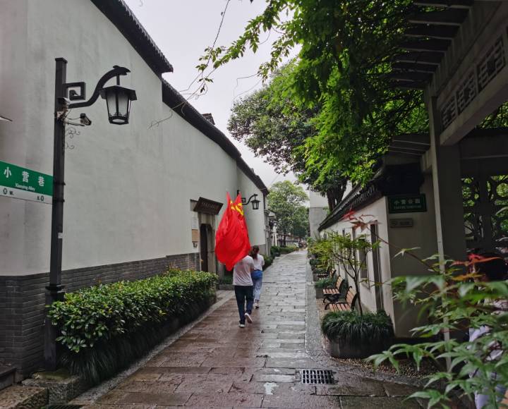 行至小营巷61号,去年7月开馆的中共杭州小组纪念馆新馆就在眼前,是巷子里人气最旺的红色景点之一。1922年9月初,中共杭州小组在皮市巷3号宣告成立,使杭州和浙江的革命斗争有了领导核心,对革命力量的壮大和党组织的发展产生了巨大影响。